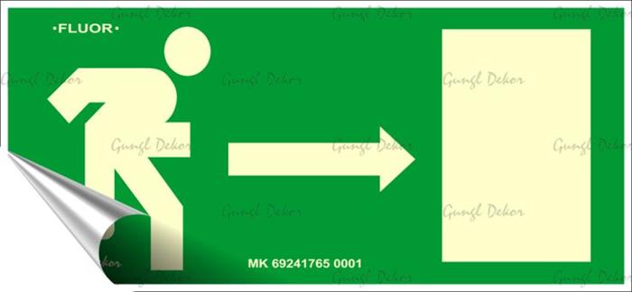 Információs matrica, 25×11,5 cm, fluoreszkáló, utánvilágítós, „Menekülési irány jobbra”