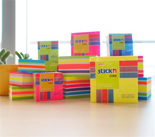 Öntapadó jegyzettömb, 51×51 mm, 250 lap, STICK N, neon színek