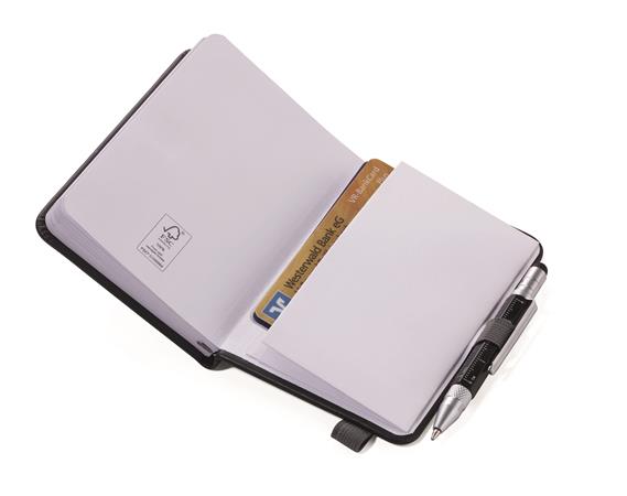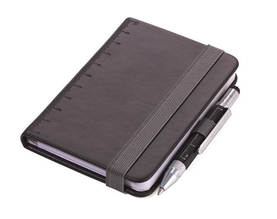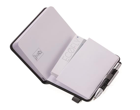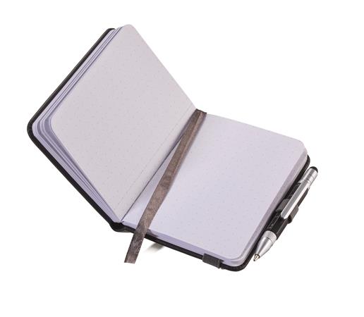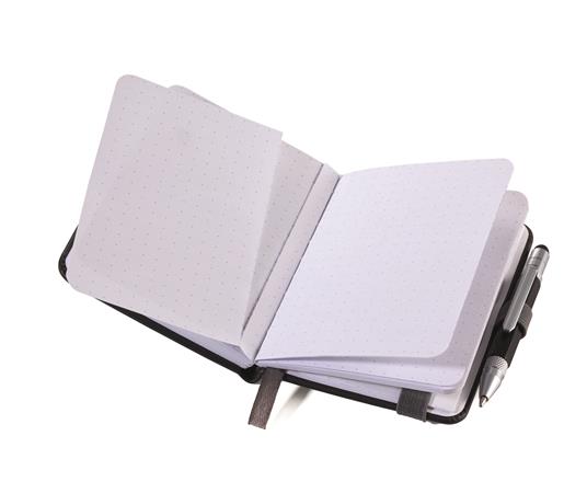 Jegyzetfüzet, exkluzív, A7, pontrácsos, 64 lap, keményfedeles, fekete golyóstollal, TROIKA „Lilipad+Liliput”, fekete