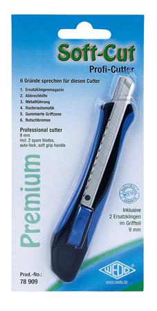Univerzális kés, 9 mm, WEDO „Soft-cut”, kék/fekete
